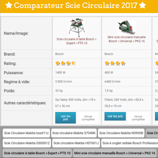 Pour satisfaire les demandes de nos lecteurs, nous avons établi des comparatifs sur les scies circulaires plongeante ainsi que les mini scies circulaires. Et pour finir un article très détaillé sur la scie circulaire Black et Decker, scie à onglet Metabo.